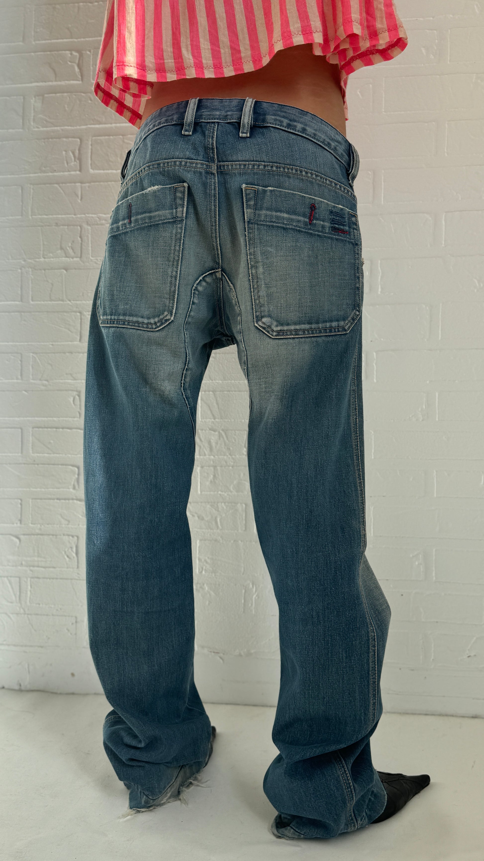 jeans measure waist 32 inches rise 13 hips 46 inseam 33 ( xlong ! )