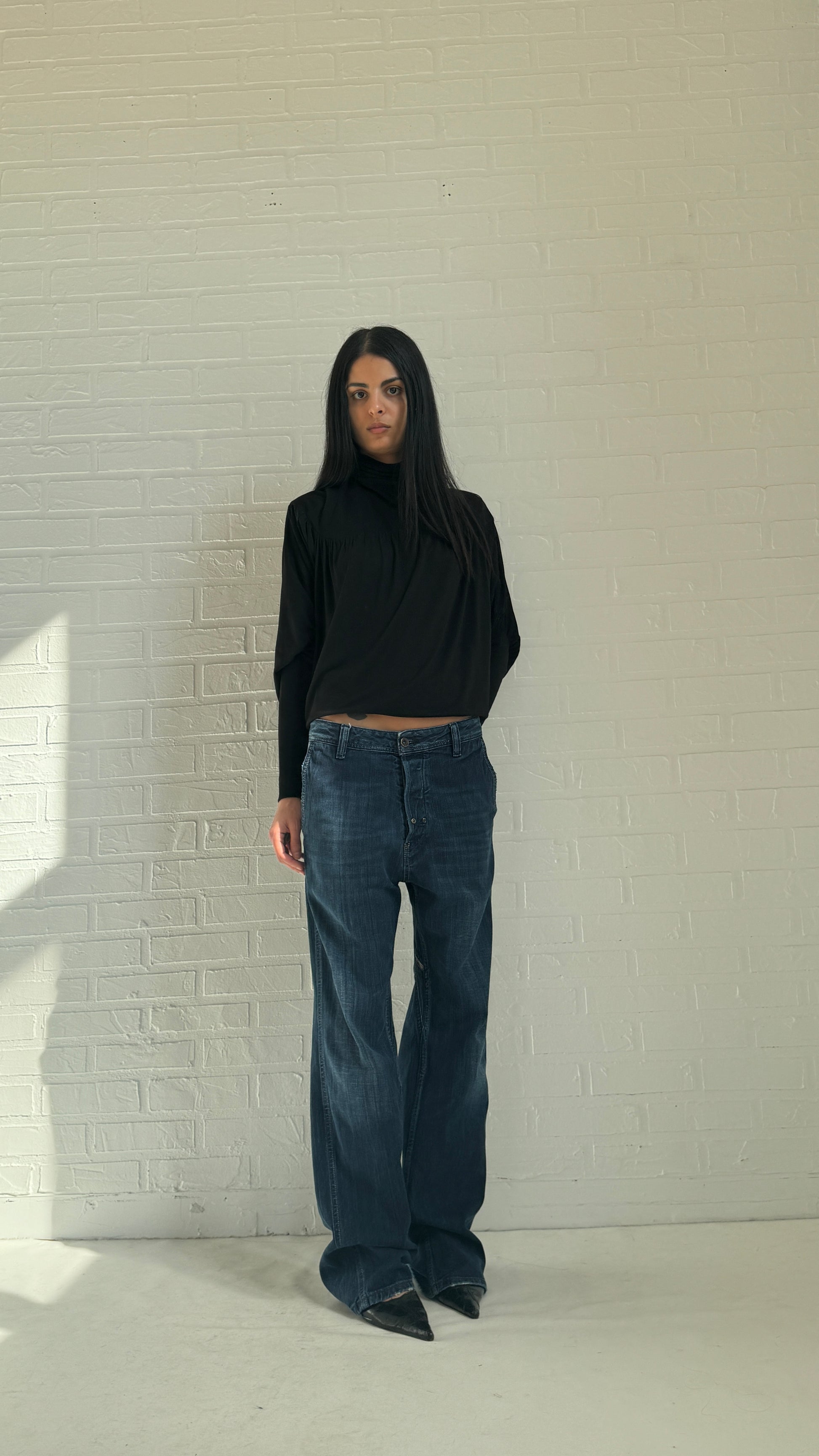 jeans measure waist 32.5 inches hip 46 rise 14 total length 40 inches