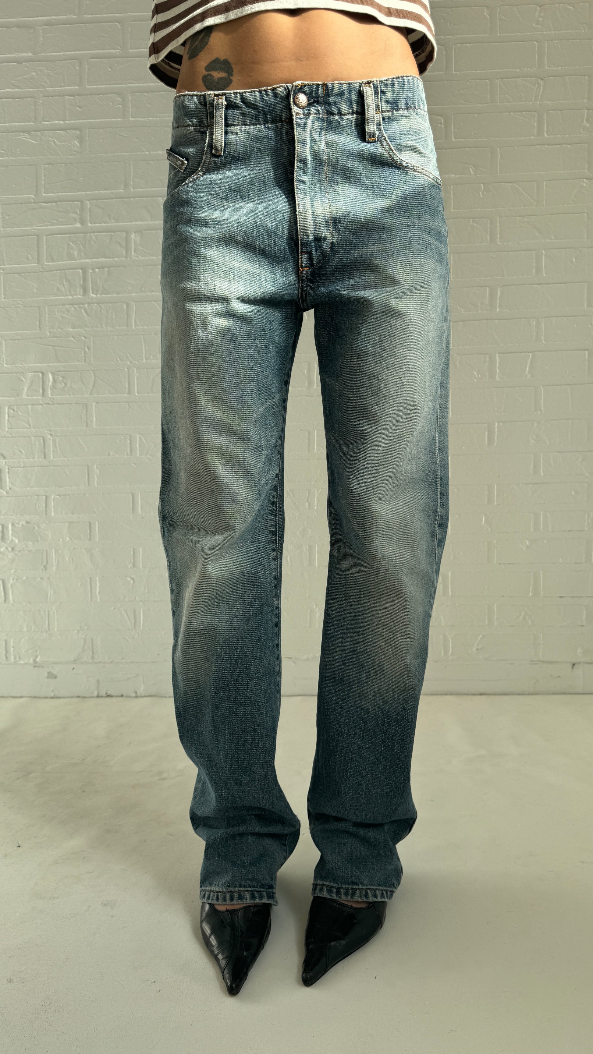 Diesel straight jeans in distressed stone wash